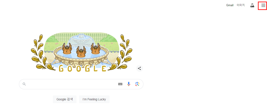 2️⃣ 우측 상단의 바둑판 모양(앱 아이콘)을 클릭한 후, 'Google 계정'을 선택합니다.