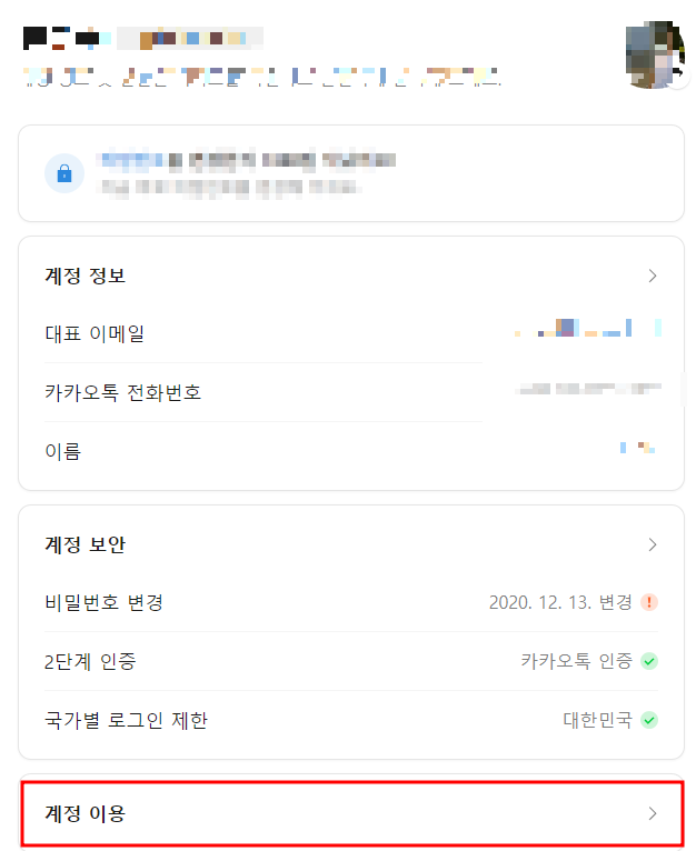 3️⃣ '계정 설정' > '계정 이용' 메뉴를 선택