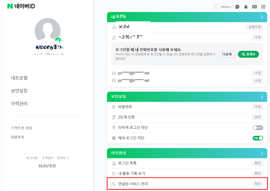 🔹 네이버 연결된 사이트 확인 방법 (PC버전)