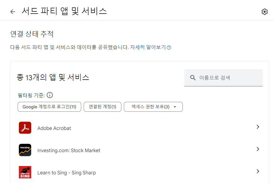🔹 구글 연결된 사이트 확인 방법 (PC버전)