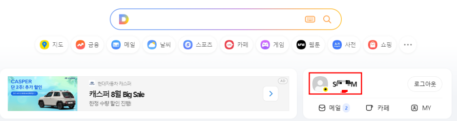 1️⃣ 다음 홈페이지(www.daum.net)에서 로그인합니다.