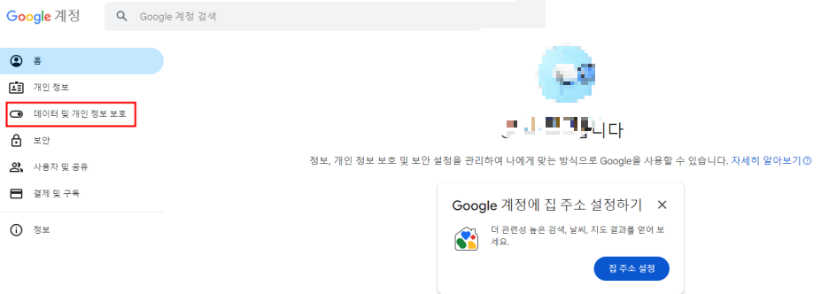 3️⃣ 좌측 메뉴에서 '데이터 및 개인정보 보호' 탭 클릭