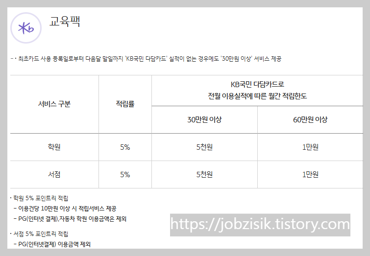 위 기본혜택 외에 선택팩(생활, 교육, 쇼핑, 직장, 레저)을 통해 1만원에서 1만4천원까지 추가 적립을 해주고 있습니다.