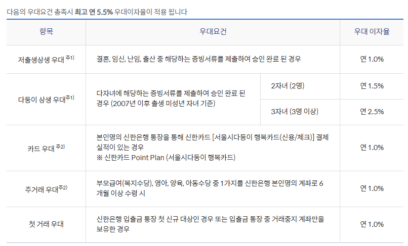 아이 1명: 1%, 2명: 2%, 3명: 3%, 4명이상: 4% 우대 (임신확인서도 인정됩니다)