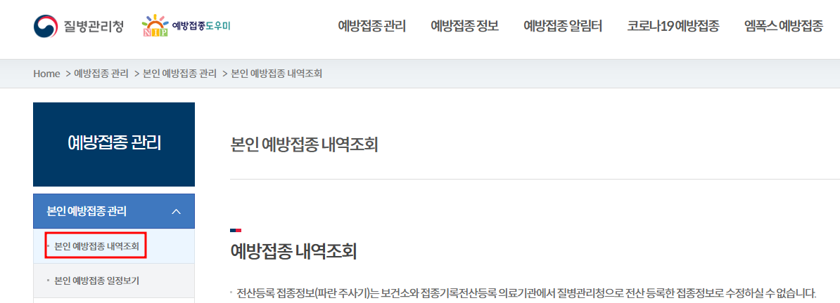 예방접종 도우미에서 본인 예방접종 내역을 조회하면 홍역에 대한 예방접종이 시행된 적이 있는지 확인할 수 있습니다.