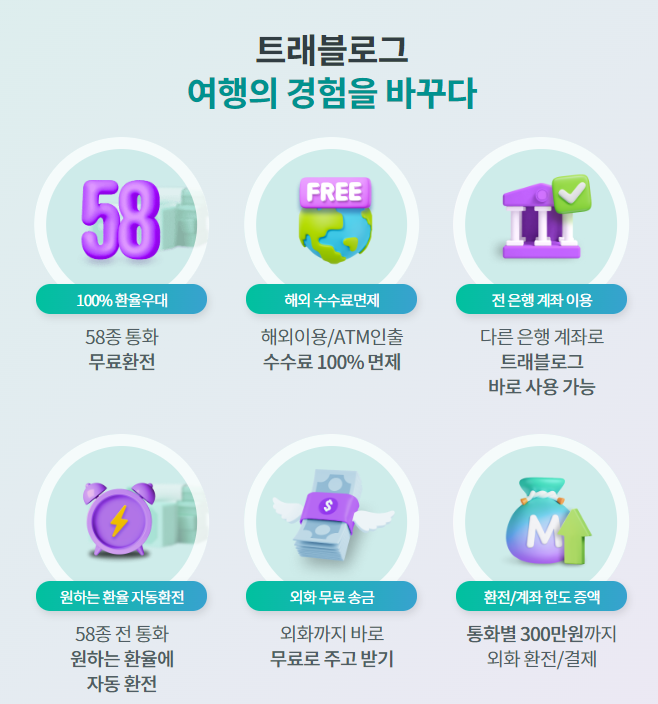 - 환전 시 58종의 통화에 대해 무료환전 혜택을 제공합니다.