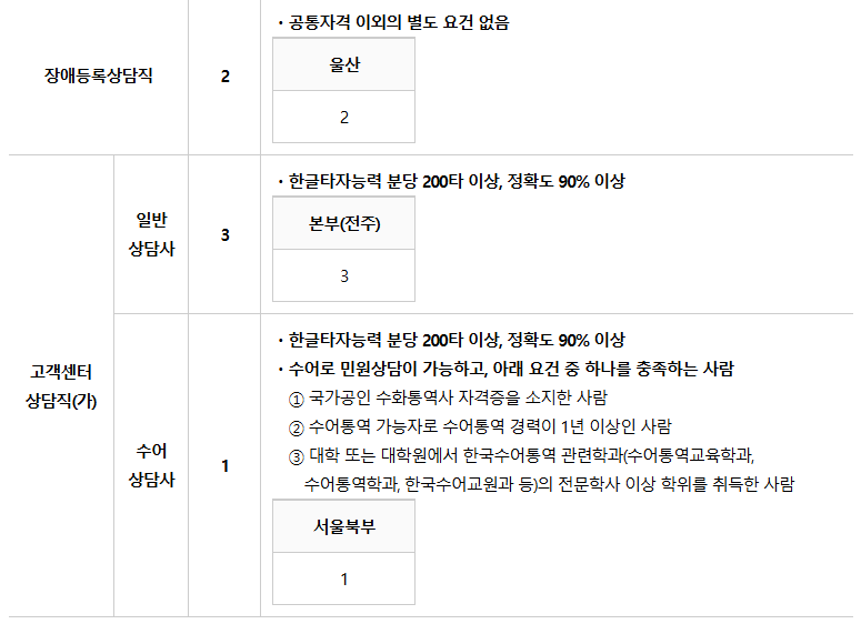장애등록 상담직 : 장애등록 심사를 위한 서비스 제공 등